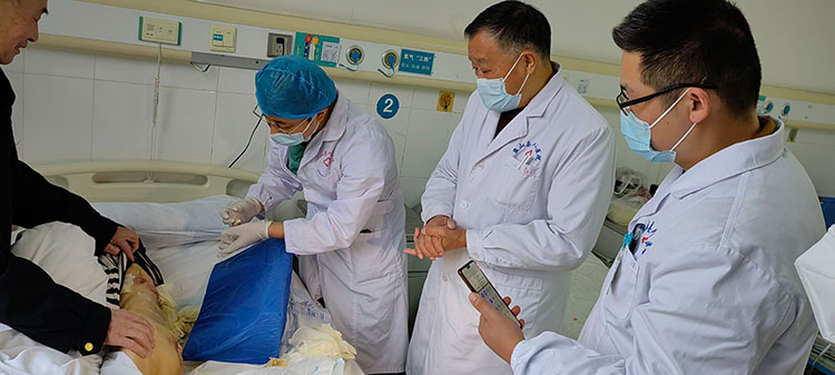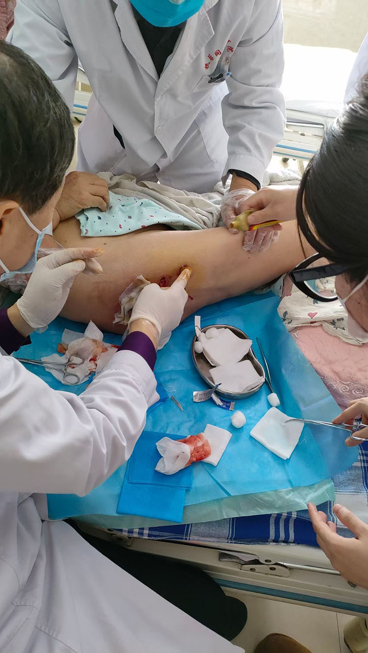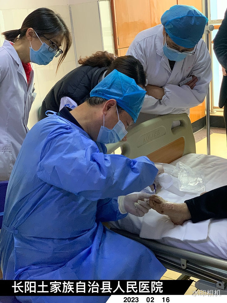 2023年2月21日,享受國務(wù)院特殊津貼專家、中國中西醫(yī)結(jié)合燒傷專業(yè)委員會顧問、中國研究型醫(yī)院學(xué)會創(chuàng)面防治與損傷組織修復(fù)專業(yè)委員會委員、中國中西醫(yī)結(jié)合學(xué)會再生醫(yī)療技術(shù)委員會創(chuàng)瘍學(xué)組首席專家、《中國燒傷創(chuàng)瘍雜志》常務(wù)編委、成都市郫都區(qū)人民醫(yī)院燒傷創(chuàng)瘍科學(xué)術(shù)帶頭人付子俊教授受重慶市巫山人民醫(yī)院邀請,對燒傷、褥瘡等各類慢創(chuàng)病人會診,在醫(yī)院粱副院長帶隊下進行了教學(xué)查房,特別對2名燒傷患者作了現(xiàn)場教學(xué)和治療方案,之后梁副院長與付子俊教授對各類燒燙傷及各類慢創(chuàng)面做了深入交流。