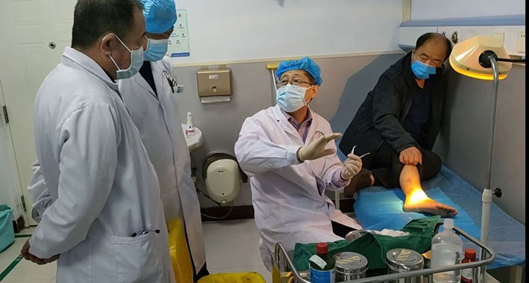 2月13日, 北京榮祥再生醫(yī)學(xué)研究所副所長、中國中西醫(yī)結(jié)合學(xué)會燒傷專業(yè)委員會常務(wù)委員、《中國燒傷創(chuàng)瘍雜志》副總編輯、應(yīng)用燒傷創(chuàng)瘍再生醫(yī)療技術(shù)治療糖尿病足領(lǐng)域?qū)<彝鹾樯魅问苎巴綎|省淄博市高青縣人民醫(yī)院,與創(chuàng)傷中心劉主任及其團隊開展再生醫(yī)療技術(shù)在壓力性損傷的療效機理與處理要點專題講座,并結(jié)合住院病例進行了現(xiàn)場教學(xué),受到大家一致好評。