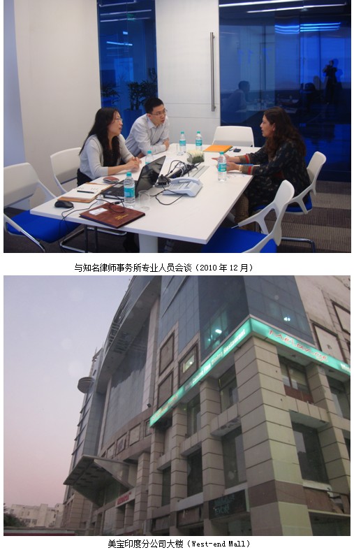 2010年下半年,國際市場集團(tuán)市場部印度工作小組對印度外資投資政策、醫(yī)藥行業(yè)的特殊要求、公司組建細(xì)節(jié)與程序、公司運(yùn)營、稅務(wù)、審計(jì)等進(jìn)行了深入的研究和評估,并初步確定了美寶印度分公司的組建與運(yùn)營初步計(jì)劃。經(jīng)董事局批準(zhǔn),2011年2月正式全面啟動(dòng)美寶印度分公司項(xiàng)目,在我方的積極努力下,與NEERAJ CO簽訂了公司注冊代理協(xié)議并啟動(dòng)了MEBO Pharmaceutical (India) Pvt Ltd 在印度新德里的全面注冊工作,公司目前已經(jīng)擁有營業(yè)執(zhí)照、自由進(jìn)出口證書以及藥品經(jīng)營證書等相關(guān)證書,為全面運(yùn)營打下了堅(jiān)實(shí)基礎(chǔ)。