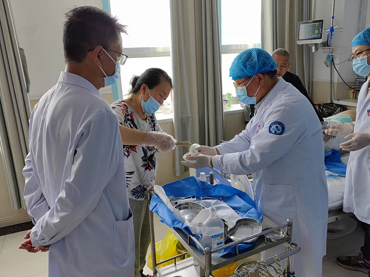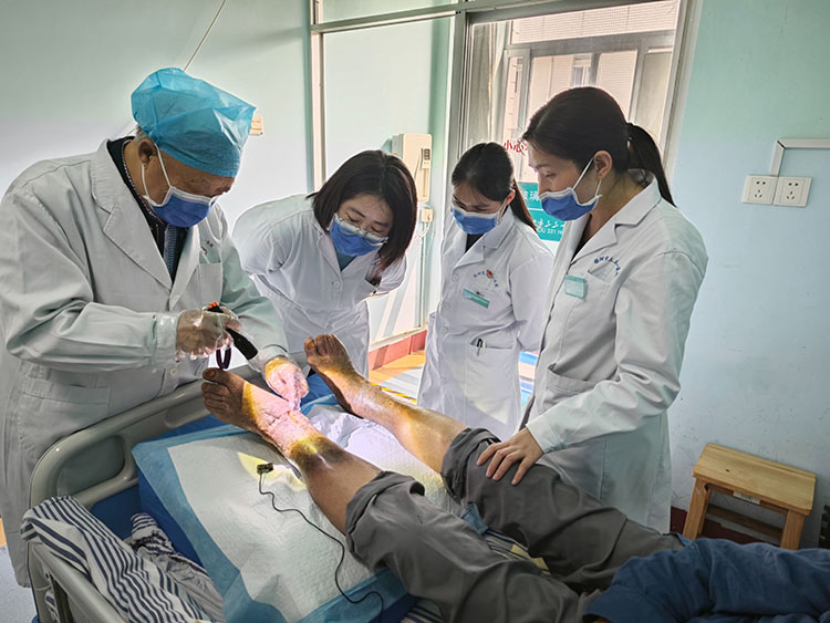 2024年4月12日,應(yīng)湖北省孝感市應(yīng)城市中醫(yī)醫(yī)院肛腸科陳培彥主任邀請(qǐng),《中國(guó)燒傷創(chuàng)瘍雜志》編委、燒傷創(chuàng)瘍?cè)偕t(yī)療技術(shù)臨床專家張強(qiáng),來到該院對(duì)一例意外燒傷的肛腸病人進(jìn)行了會(huì)診,現(xiàn)場(chǎng)運(yùn)用再生醫(yī)療技術(shù)示范換藥講解細(xì)節(jié),受到大家好評(píng)!