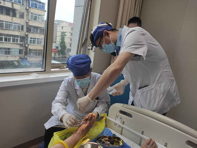 趙瑞慶教授受邀到張家港港成康復(fù)醫(yī)院創(chuàng)面修復(fù)科會診治療