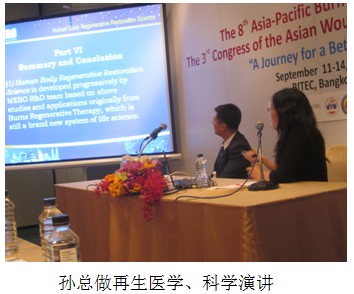 演講中,孫總詳細介紹了再生醫(yī)學、科學的整體發(fā)展歷程及最新研究應(yīng)用進展,內(nèi)容范圍覆蓋燒傷、創(chuàng)瘍、斷指、胃腸再生、抗衰老等生命科學前沿課題的最新研究進展;同時科學性地介紹了美寶再生的科學機理。本來20分鐘的演講持續(xù)了40分鐘,既豐富、系統(tǒng)又深入的內(nèi)容使在場的各位聽眾被深深吸引,并大呼震驚!---人體的潛能這么大,再生科學的應(yīng)用范圍這么廣!