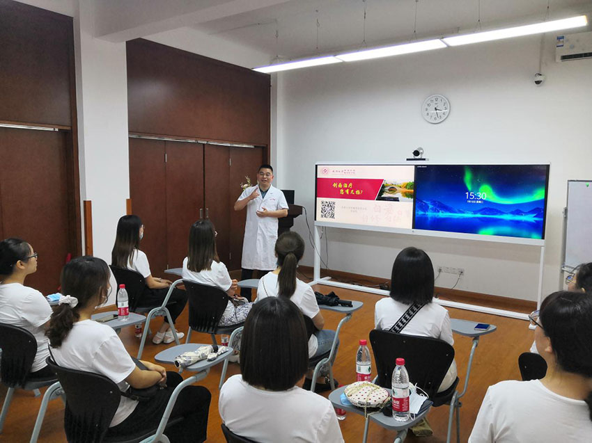 第二天上午,北京隊(duì)師生團(tuán)走進(jìn)北京市豐臺(tái)區(qū)中醫(yī)醫(yī)院(南苑醫(yī)院)燒傷整形與創(chuàng)面修復(fù)科,就再生醫(yī)療技術(shù)的臨床應(yīng)用以及學(xué)科發(fā)展等進(jìn)行了學(xué)習(xí)交流。