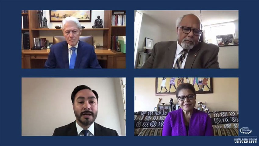 2020年美東時間4月18日中午12點,克林頓全球倡議大學(CGIU)虛擬年會召開。眾多來自政府機構、非政府組織、知名企業(yè)的領導者及特定議題的專家學者和知名院校的學生領袖、院校代表在線參加了此次年會。
