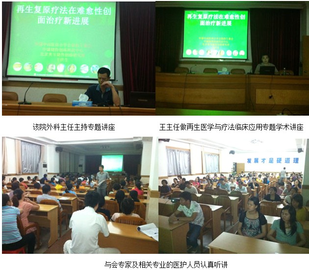 2012年10月23日,應(yīng)該院的邀請(qǐng)中國(guó)中西醫(yī)結(jié)合學(xué)會(huì)燒傷專業(yè)委員會(huì)常委兼秘書,《中國(guó)燒傷創(chuàng)瘍雜志》副總編輯,北京燒傷創(chuàng)瘍研究所副所長(zhǎng)、臨床研究部主任王洪生研究員到該醫(yī)院進(jìn)行“再生復(fù)原療法在燒傷及難治性創(chuàng)傷、潰瘍創(chuàng)面治療臨床規(guī)范化應(yīng)用及新進(jìn)展”專題講座。專題學(xué)術(shù)講座于晚上7點(diǎn)半在該醫(yī)院會(huì)議室舉行,該院燒傷科,骨科,普外科,腫瘤科、內(nèi)科,皮膚科和婦產(chǎn)科的相關(guān)專業(yè)60余名專家及醫(yī)護(hù)人員參加了學(xué)術(shù)會(huì)議。在專題學(xué)術(shù)講座中,王主任結(jié)合了大量的臨床病例圖片,針對(duì)不同深度的燒傷創(chuàng)面及各類難愈性創(chuàng)傷、潰瘍創(chuàng)面的規(guī)范化處理方法與技巧、注意事項(xiàng)等進(jìn)行了細(xì)致地講解。在會(huì)的醫(yī)護(hù)人員看到大量真實(shí)的臨床病例資料圖片后,都被再生醫(yī)療技術(shù)良好的治療效果所震撼與折服。此次講座深受會(huì)者的歡迎,再生復(fù)原技術(shù)為醫(yī)護(hù)人員在臨床上提供了一條新的治療思路,開闊了醫(yī)護(hù)工作者的視野,增長(zhǎng)了新的知識(shí)。
