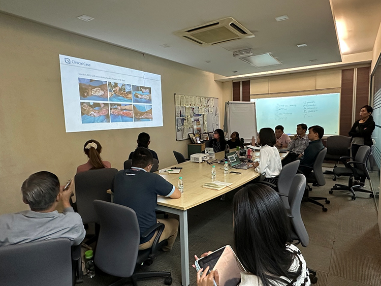 7月4日下午,培訓(xùn)周最后一站在雪蘭莪州新開設(shè)的Sunway Medical Centre Damansara落地舉行。Sunway集團(tuán)旗下的多家分支醫(yī)院采用再生醫(yī)療技術(shù)治愈燒傷病人已久,因此在Damansara地區(qū)開設(shè)的新院區(qū)建院已始便引入MEBO作為重要的治療手段。此次培訓(xùn)聚焦燒傷患者,術(shù)后創(chuàng)口管理與糖尿病足等慢性難愈合傷口的治療,獲得醫(yī)護(hù)團(tuán)隊(duì)的一致認(rèn)可。