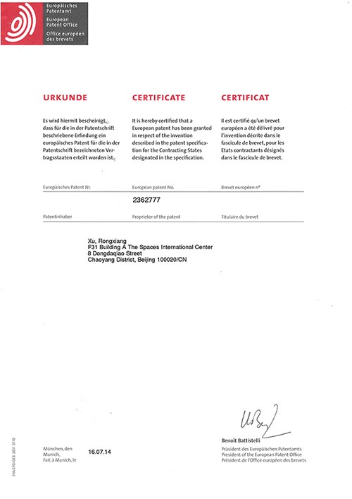 2014年7月底,美寶集團(tuán)世界知識產(chǎn)權(quán)發(fā)展進(jìn)程中再獲喜訊,再生生命科學(xué)創(chuàng)立人徐榮祥再獲歐洲專利——藥物組合物在制備治療糖尿病潰瘍藥物中的用途,該專利是徐榮祥教授獲得的第30個專利.
