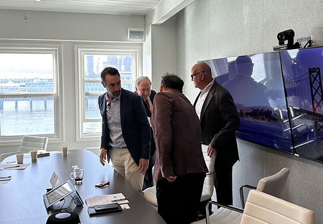 當(dāng)?shù)貢r間4月24日上午,在舊金山灣區(qū)委員會總部,美寶集團(tuán)董事局主席及灣區(qū)委員會執(zhí)行董事兼國際委員會共同主席徐鵬,與灣區(qū)委員會首席執(zhí)行官Jim Wunderman共同會見了前來拜訪并舉行APEC預(yù)備工作會議的智利駐美大使Juan Gabriel Valdés一行。參與會見的還有灣區(qū)委員會首席運(yùn)營官John Grubb和灣區(qū)委員會經(jīng)濟(jì)研究院高級主管、前院長Sean Randolph等。