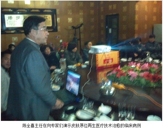 2012年11月4日,中國中西醫(yī)結(jié)合學會燒傷專業(yè)委員會、北京美寶燒傷創(chuàng)瘍研究所臨床部專家陳全喜和河南技術(shù)推廣責任人賀杰鋒應邀來到了商丘市寧陵縣。下午5點對寧陵縣人民醫(yī)院外科,中醫(yī)院外科、婦產(chǎn)科,婦幼保健院婦產(chǎn)科二十一位科主任護士長進行皮膚原位再生醫(yī)療技術(shù)的培訓。