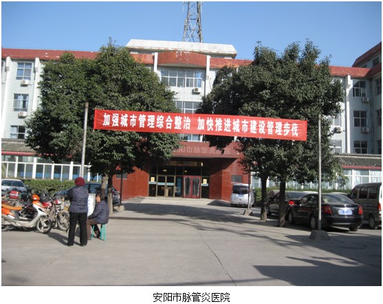 安陽市脈管炎醫(yī)院(又名安陽市中西醫(yī)結(jié)合醫(yī)院),二級(jí)甲等中醫(yī)院。始建于1984年6月,是一所集醫(yī)療、康復(fù)、預(yù)防、科研為一體的全民事業(yè)單位,隸屬于安陽市衛(wèi)生局,是安陽市醫(yī)療保險(xiǎn)定點(diǎn)醫(yī)院、河南省新型農(nóng)村合作醫(yī)療定點(diǎn)醫(yī)院。