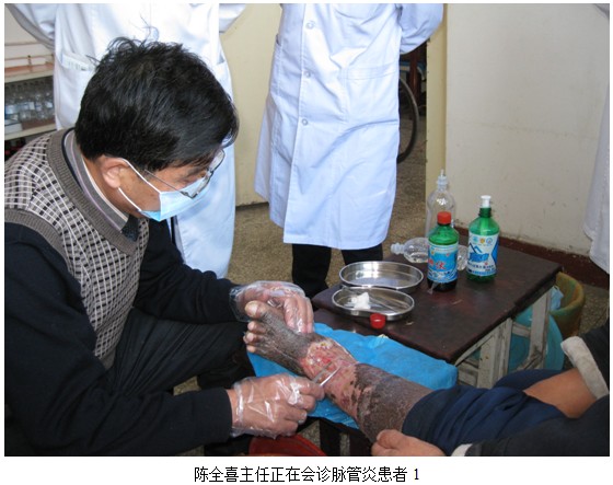 2012年11月26日,安陽市脈管炎醫(yī)院院長(zhǎng)李建芬邀請(qǐng)中國(guó)中西醫(yī)結(jié)合學(xué)會(huì)燒傷專業(yè)委員會(huì)委員陳全喜主任會(huì)診兩位脈管炎病人。