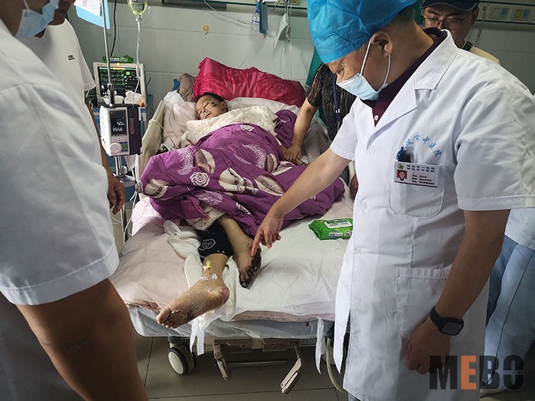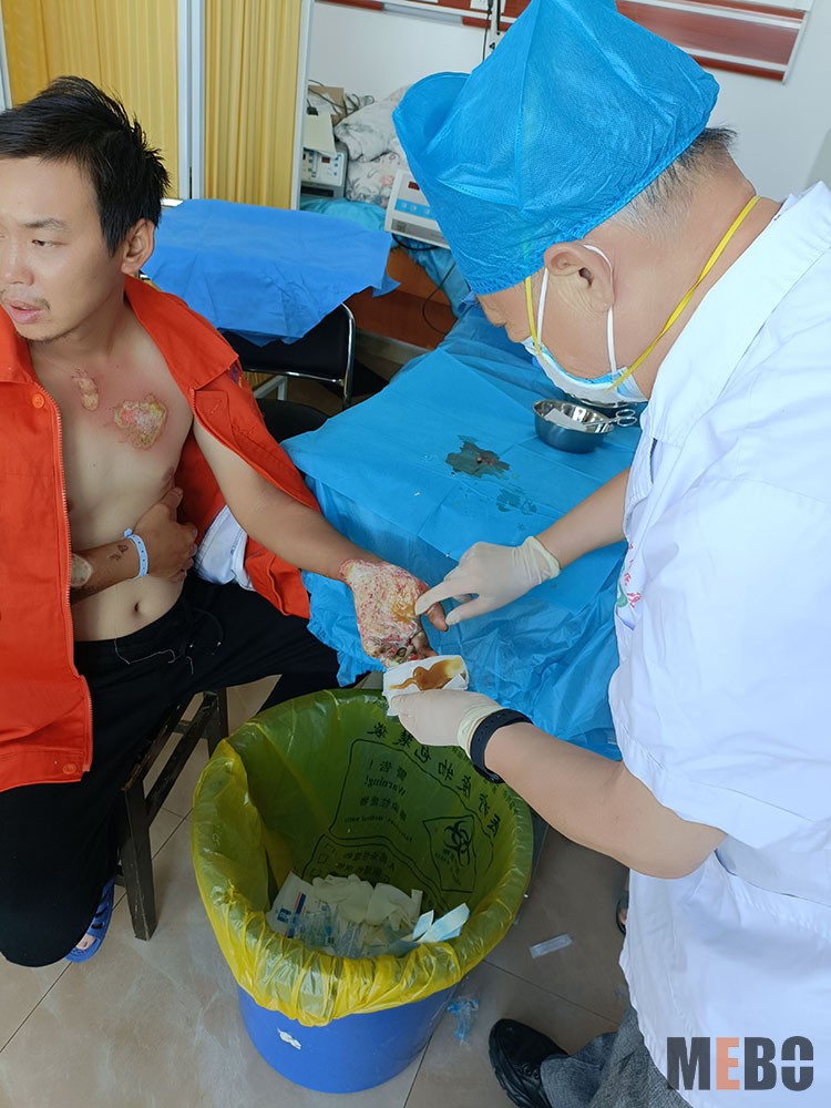 2022年8月3日,中國中西醫(yī)結(jié)合學(xué)會燒傷專業(yè)委員會醫(yī)療部張強主任,應(yīng)邀到訪湖北宜昌長陽土家族自治縣人民醫(yī)院普外科,會診兩例燒傷患者。其中一例患者77歲,外傷后臀部及雙下肢二度燒傷,入院第四天。張主任示范清創(chuàng)技巧,對后期創(chuàng)面如何處理提供了中肯方案。劉勇主任,張磊醫(yī)師和鄧邦力醫(yī)師等感謝張主任不辭勞苦教學(xué)查房,大家受益匪淺,表示在今后臨床中將美寶再生醫(yī)療技術(shù)學(xué)以致用,造?;鶎永习傩?!