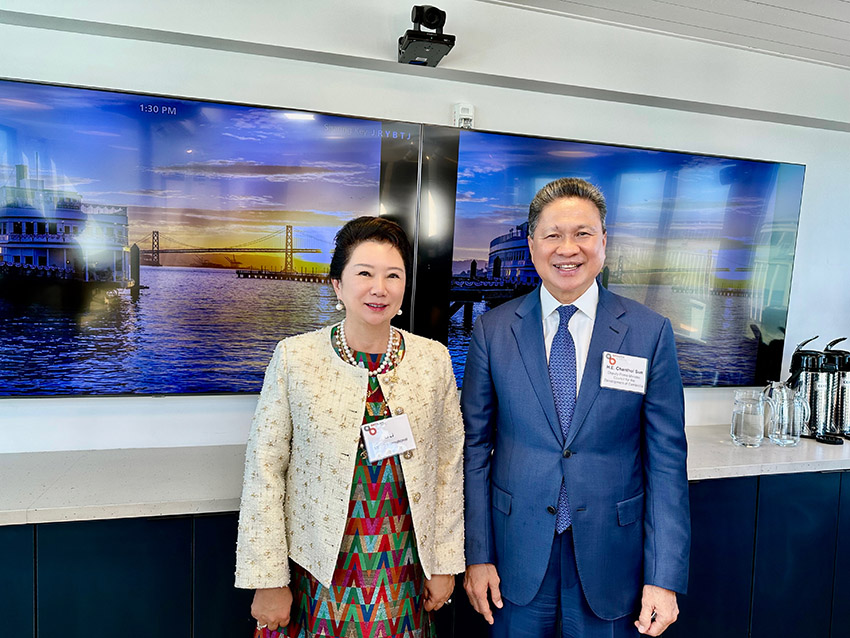 2024年9月23日正午時(shí)分,加州灣區(qū)委員會(huì)在位于其總部克拉馬斯號(hào)(Klamath)頂層美寶花園的主會(huì)議室內(nèi),以一場(chǎng)溫馨而莊重的午餐會(huì),熱情接待了柬埔寨副首相孫占托閣下率領(lǐng)的代表團(tuán)一行。美寶集團(tuán)董事局李俐代表董事長(zhǎng)徐鵬(灣區(qū)委員會(huì)執(zhí)行董事兼國(guó)際委員會(huì)主席)與灣區(qū)委員會(huì)經(jīng)濟(jì)研究院院長(zhǎng)肖恩·倫道夫作為東道主共同主持接待了代表團(tuán)一行,展現(xiàn)了灣區(qū)委員會(huì)對(duì)國(guó)際伙伴關(guān)系的重視與期待。