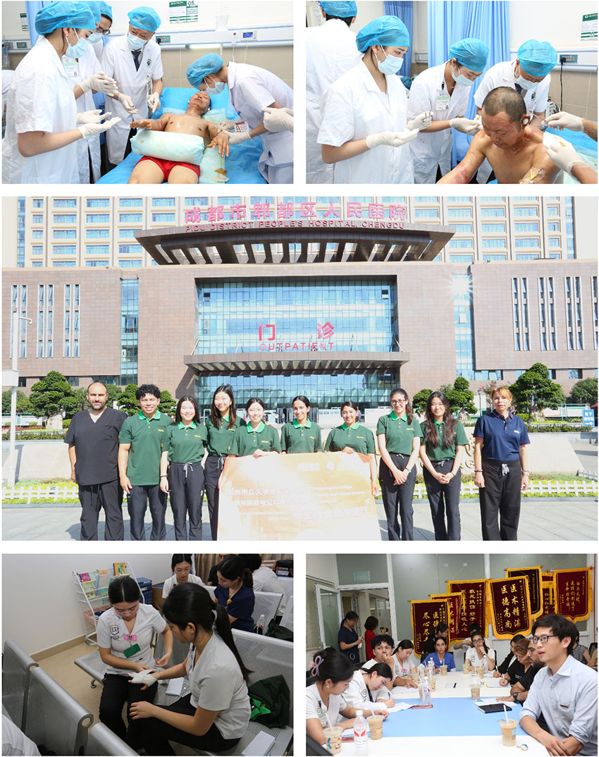 訪學(xué)之旅的首站定于成都,這座承載著古蜀文明輝煌歷史的城市。7月5日,師生們走進(jìn)成都市郫都區(qū)人民醫(yī)院,受到郫都人民醫(yī)院副院長、中國中西醫(yī)結(jié)合學(xué)會(huì)燒傷專業(yè)委員會(huì)顧問付子俊、郫都人民醫(yī)院燒傷創(chuàng)瘍科主任王鄉(xiāng)寧及多位專家的熱情歡迎。在這里,他們不僅親眼見證了再生醫(yī)療技術(shù)的臨床應(yīng)用奇跡,還通過觀摩美寶濕潤燒傷膏的換藥過程及護(hù)理晨間治療,深刻感受到了醫(yī)療創(chuàng)新的力量。此外,系列專題講座更是激發(fā)了學(xué)生們對(duì)再生醫(yī)療技術(shù)濃厚的興趣與探索欲。
