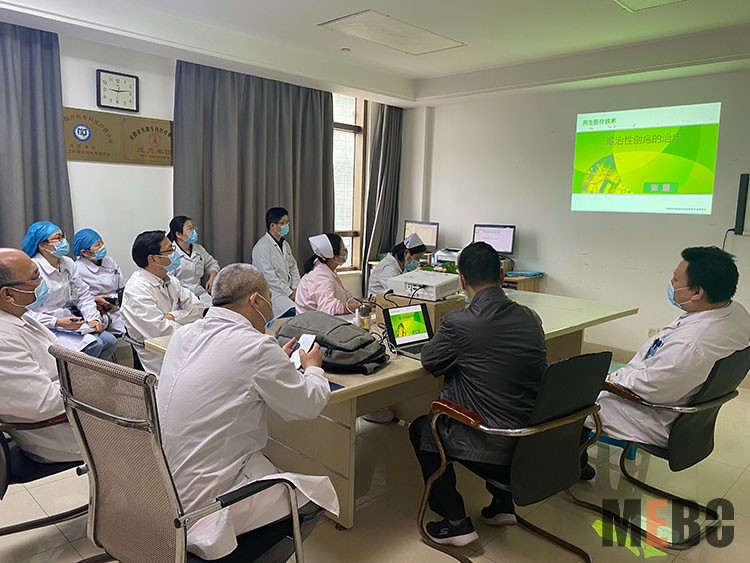 2021年4月22日,鄭州大學(xué)附屬洛陽中心醫(yī)院迎來了禹州,汝州,許昌,臨穎等地市的醫(yī)療同仁來洛參觀交流,大家就再生醫(yī)療技術(shù)的多學(xué)科應(yīng)用,不同創(chuàng)面不同時期的多技術(shù)聯(lián)合共同促進創(chuàng)面的快速愈合,最大程度減輕和避免疤痕的產(chǎn)生產(chǎn)生討論,并達成共識,表示響應(yīng)國家號召與MEBT/MEBO,共同推進創(chuàng)面修復(fù)學(xué)科建設(shè)。