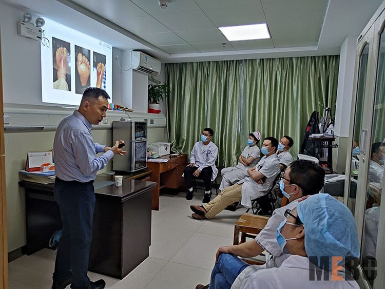 2021年4月28日,應(yīng)汕大附一龍湖人民醫(yī)院的邀請,北京榮祥再生醫(yī)學(xué)研究所副所長、中國中西醫(yī)結(jié)合學(xué)會燒傷專業(yè)委員會常務(wù)委員、《燒傷創(chuàng)瘍雜志》副總編輯、應(yīng)用燒傷創(chuàng)瘍再生醫(yī)療技術(shù)治療糖尿病足領(lǐng)域?qū)<?、研究員王洪生主任來到醫(yī)院會診多例糖尿病足患者,王教授親自示范清創(chuàng)與換藥,進行臨床教學(xué)指導(dǎo),并做了《再生醫(yī)療技術(shù)在糖尿病足潰瘍創(chuàng)面研究進展及治療要點》專題講座,受到主任及科室人員高度贊揚與認(rèn)可!
