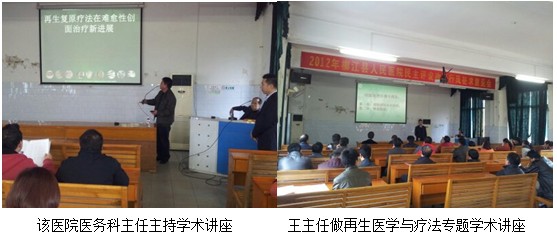 2012年12月7日,王主任應邀到廣西百色凌云縣中醫(yī)院進行 “再生療法在難愈性創(chuàng)瘍創(chuàng)面治療新進展”專題臨床學術講座。該醫(yī)院成立于1991年5月,其前身是民辦醫(yī)院即泗城鎮(zhèn)衛(wèi)生院,座落在凌云縣城東——鄧小平足跡之旅風景區(qū)獨秀峰腳下,是一所集醫(yī)療、預防、保健、康復、科研為一體的綜合性中醫(yī)院,是城鎮(zhèn)職工基本醫(yī)療保險和人壽醫(yī)療保險定點醫(yī)院之一。 醫(yī)院占地面積1780平方米,業(yè)務用房建筑面積1238平方米,現(xiàn)有職工56人,衛(wèi)技人51人,中級以上職稱人員占50%。住院病床65張,分內(nèi)兒、婦產(chǎn)、骨外科三個病區(qū)。擁有進口自動血細胞分析儀,半自動生化分析儀、尿分析儀、表迪遜B超、200毫安X光機、多功能麻醉吸呼機、心電圖機、心電監(jiān)護儀等先進醫(yī)療設備,為醫(yī)療、科研提供了較好的工作條件。學術講座于當天晚上7:30在醫(yī)院會議室舉行,全院各科室主任和醫(yī)護人員共30余人到會聆聽王主任的專題講座。該醫(yī)院醫(yī)務科科長黃澤全程主持了會議。在講座中王主任結合了大量的臨床病例圖片及錄像資料,主要針對深度燒傷及各類難愈性創(chuàng)傷、潰瘍創(chuàng)面、糖尿病足、放射性潰瘍的規(guī)范化處理方法與技巧、注意事項等進行了細致講解,強調(diào)創(chuàng)面處理要大膽清創(chuàng)、減壓、去除壞死組織,并保持創(chuàng)面生理的濕潤環(huán)境,實現(xiàn)創(chuàng)面的再生復原。會后,與會的醫(yī)護人員都被再生療法在創(chuàng)面上的全新治療方案所折服。