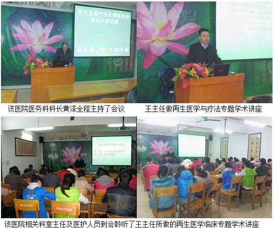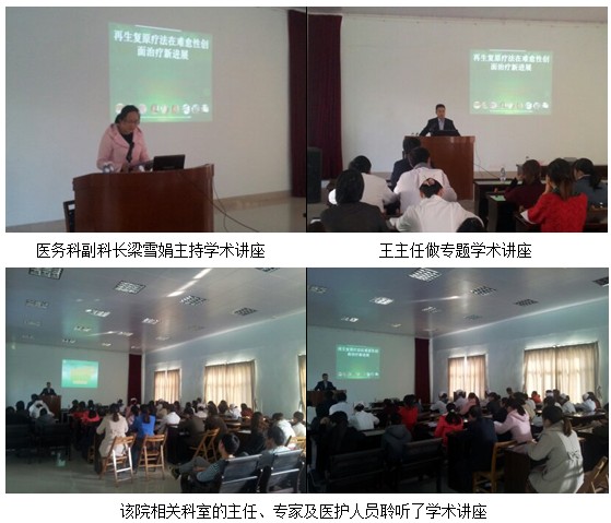 2012年12月6日,王主任應邀到廣西水電醫(yī)院進行 “再生療法在燒傷、難愈性創(chuàng)瘍創(chuàng)面治療新進展”專題臨床學術講座。該醫(yī)院原稱廣西水電工程局職工醫(yī)院,是隸屬于廣西水電工程局的一所企業(yè)辦綜合醫(yī)院,創(chuàng)建于1958年的春天(廣西橫縣西津電站)。四十多年來,它隨著廣西水電的建設發(fā)展,輾轉奔波于廣西各個水電施工工地上。1975年建設大化電站時,定址大化至今。醫(yī)院占地面積25畝 ,建筑面積 11351平方米 。床位定編145張。有職工155人,衛(wèi)技人員118人,其中副高級職稱8人,中級職稱56人。