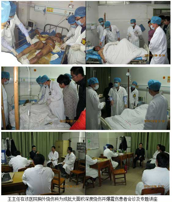 2012年12月8日早上,廣西貴港市平南縣人民醫(yī)院急診收治一批因大型氣罐爆炸致大面積深度燒沖復合傷(燒傷并爆震傷)患者,當日上午該醫(yī)院主管副院長兼胸外燒傷科主任臧德源緊急邀請王主任到該醫(yī)院為成批大面積深度燒傷合并爆震傷患者會診。該醫(yī)院創(chuàng)建于1935年,是一所集醫(yī)療、科研、教學、預防、保健、康復和社區(qū)衛(wèi)生服務于一體的綜合性縣(市)級醫(yī)院,是平南縣醫(yī)療業(yè)務技術指導中心,擔負著全縣130多萬人民的醫(yī)療保健任務。醫(yī)院設床位390張,年門急診量近36萬人次,住院病人1.6萬人次.現(xiàn)有職工624人,有碩士研究生4人,高級職稱14人,中級職稱221人。