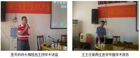 會后,該院副院長兼骨科學(xué)科帶頭人魏海林和醫(yī)務(wù)科科長梅桂色與王主任的交流中講到,過去只知道再生療法治療燒傷,今天聽了王主任的講座才知道再生醫(yī)療技術(shù)還在難愈性創(chuàng)面潰瘍創(chuàng)面中的獨特療效,這次臨床學(xué)術(shù)講座非常必要,希望王主任有空多到該院進行再生技術(shù)的指導(dǎo),讓再生技術(shù)更好的掌握再生技術(shù)服務(wù)于邕寧區(qū)人民。