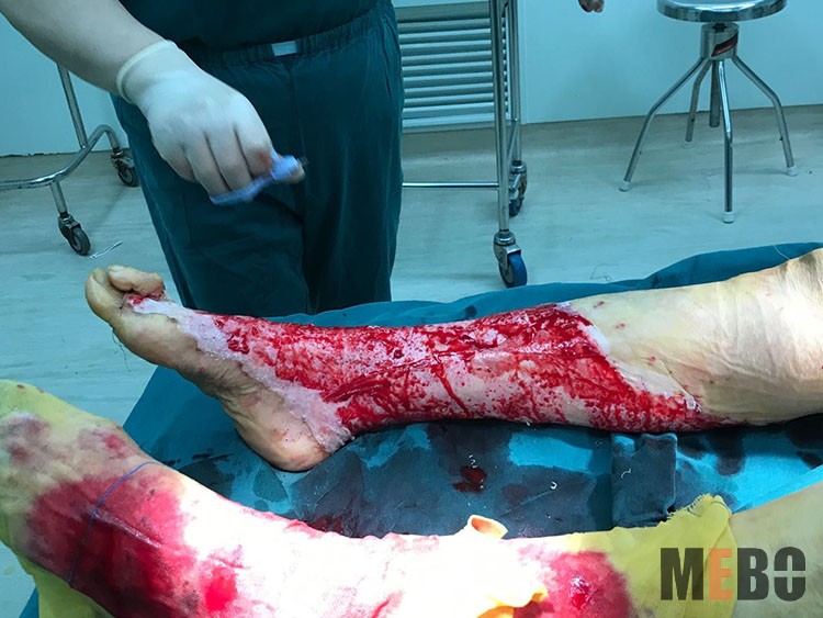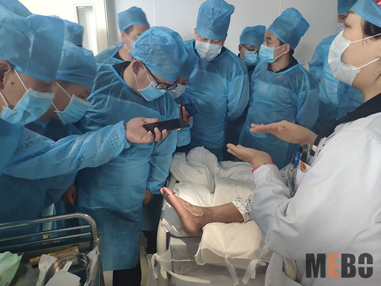11月26日,中國(guó)中西醫(yī)結(jié)合學(xué)會(huì)燒傷專(zhuān)業(yè)委員會(huì)副主委、南通三院燒傷整形美容與創(chuàng)面修復(fù)科主任—趙賢忠教授受邀到南通中醫(yī)院,對(duì)一例開(kāi)水燙傷創(chuàng)面植異種皮術(shù)后皮下出血感染患者進(jìn)行了會(huì)診。手術(shù)去除異種皮后改用美寶濕潤(rùn)燒傷膏行皮膚再生療法處理,創(chuàng)面處理效果理想,受到科室全體醫(yī)護(hù)人員的贊揚(yáng)!
