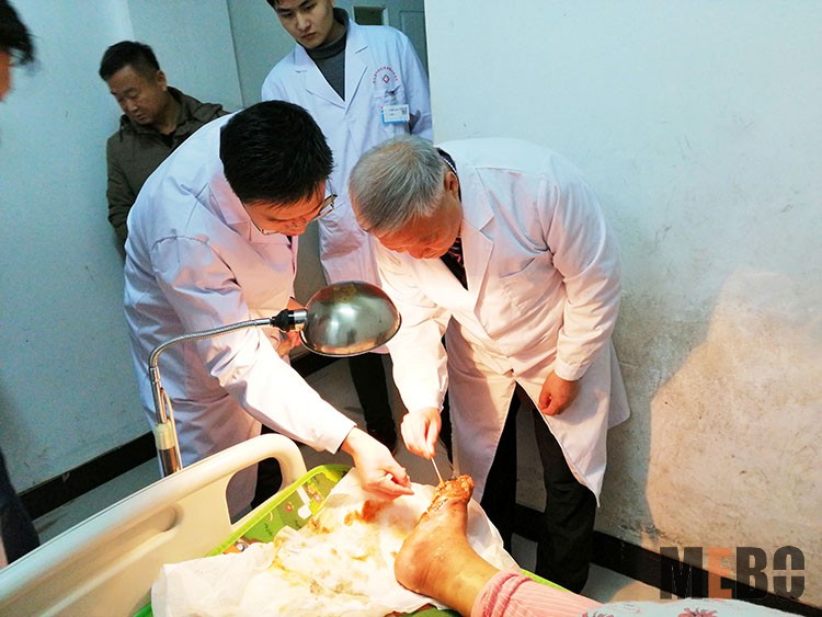11月26日,再生醫(yī)學(xué)知名專(zhuān)家、《中國(guó)燒傷創(chuàng)瘍雜志社》常務(wù)編委趙瑞慶主任應(yīng)灌云縣人民醫(yī)院和灌云縣中醫(yī)院邀請(qǐng)會(huì)診1例雙下肢脈管炎合并雙足潰瘍、2例糖尿病足潰瘍患者、1例鎖骨骨折術(shù)后鋼板外露患者,后到科室指導(dǎo)醫(yī)護(hù)人員制定后續(xù)治療方案。