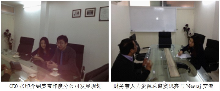 2013年1月29日下午, 印度分公司CEO張印與印度分公司財務兼人力資源總監(jiān)竇思亮一同前往會計稅務律師事務所NEERAJ BHAGAT & CO,就印度分公司的日常財務、印度分公司的稅務、印度分公司的審計、印度分公司的資金、印度分公司的銷售資金周轉和運作、印度分公司員工的福利待遇、印度分公司的中遠期投資規(guī)劃進行了會談。