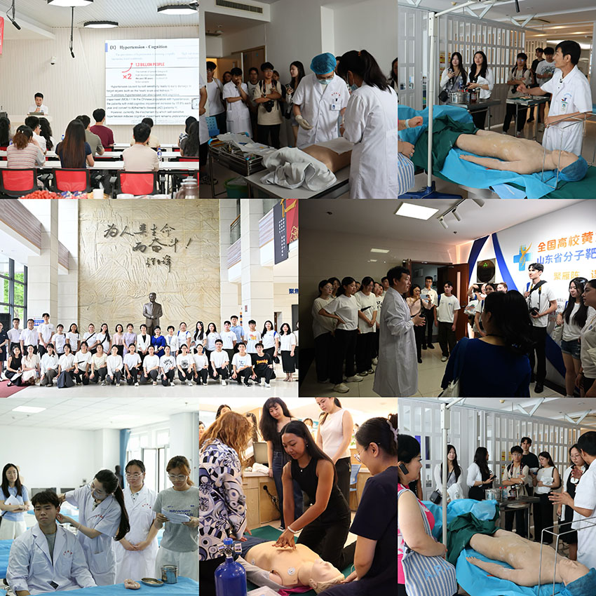 7月7日,本次訪學(xué)之旅在山東煙臺(tái)濱州醫(yī)學(xué)院拉開(kāi)帷幕,師生們受到熱情接待,參與了隆重的歡迎儀式并參觀了校史館及榮祥樓,在徐榮祥教授銅像前共同獻(xiàn)花,深切緬懷這位再生醫(yī)學(xué)領(lǐng)域的先驅(qū)。在煙臺(tái)期間,行程豐富而深入大家開(kāi)啟了學(xué)術(shù)碰撞,在護(hù)理學(xué)院、第一臨床醫(yī)學(xué)院組織了多場(chǎng)英文學(xué)術(shù)匯報(bào),主題涵蓋腸道菌群與高血壓認(rèn)知、mHealth在HIV預(yù)防中的應(yīng)用、徐榮祥再生醫(yī)學(xué)理論探索等前沿領(lǐng)域,中美師生積極互動(dòng)。