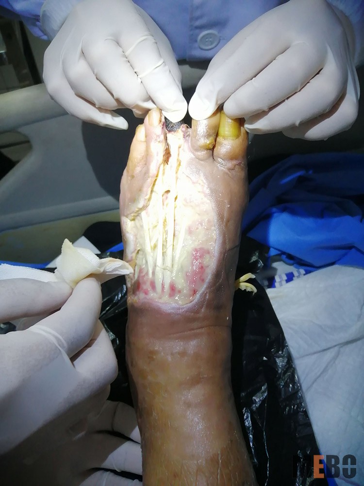 2021年5月12日, 應(yīng)南昌大學(xué)附屬三三四醫(yī)院外科錢主任和萬醫(yī)生邀請,北京榮祥再生醫(yī)學(xué)研究所副所長、《中國燒傷創(chuàng)瘍雜志》編委金黨軍前往該科室對一名糖尿病足患者進(jìn)行會診,并親自給患者進(jìn)行清創(chuàng)換藥,示范再生醫(yī)療技術(shù)治療糖尿病足患者的規(guī)范操作,并給出了很多專業(yè)的后期處理建議,錢主任萬醫(yī)生對金教授的到來表示了高度感謝,也對再生醫(yī)療技術(shù)治療慢創(chuàng)有了更深的認(rèn)識。