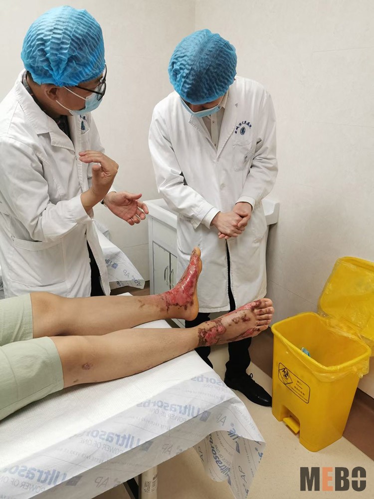 2021年5月16日,鄭州大學(xué)附屬洛陽中心醫(yī)院李志剛主任至北方企業(yè)職工醫(yī)院,對一例混合三度燒傷病人進(jìn)行會診,對創(chuàng)面前期應(yīng)用MEBT/MEBO的治療效果給予肯定,對后期創(chuàng)面的快速愈合給出多個治療方案,堅定了醫(yī)生對病人創(chuàng)面快速治愈的信心。