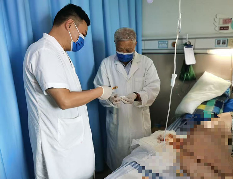 7月31日,應(yīng)湘潭市第六人民醫(yī)院創(chuàng)面修復(fù)科李湘輝主任的邀請(qǐng),《中國(guó)燒傷創(chuàng)瘍雜志》編委、燒傷創(chuàng)瘍?cè)偕t(yī)療技術(shù)臨床專(zhuān)家金黨軍,到科室會(huì)診一例多發(fā)性壓瘡患者,金黨軍主任親自示范再生醫(yī)療技術(shù)換藥流程,強(qiáng)調(diào)了換藥過(guò)程中的禁忌和注意事項(xiàng),并交流了綜合治療方案,得到了科室主任的高度認(rèn)可,再生醫(yī)療技術(shù)在湖南省湘中地區(qū)醫(yī)療單位逐漸擴(kuò)大普及和應(yīng)用,為廣大慢性創(chuàng)面患者帶來(lái)了福音。