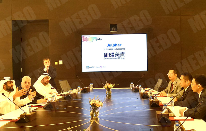隨后,Julphar董事局主席Sheikh Saqer率副主席及高管團隊與徐鵬主席率領的美寶團隊就美寶集團與Julphar的商務合作開展了深入的會談,回顧了2009年以來雙方在商業(yè)合作領域取得成就,剖析了近年來市場發(fā)展遇到的問題及挑戰(zhàn),會談達成多項共識。Sheikh Saqer向徐鵬介紹了3名新任董事會成員,他指出過去兩年多來Julphar 的發(fā)展遇到一系列問題,包括與美寶集團及其高層之間的交流溝通,并提出了一系列的改進措施與建議。他強調(diào)未來必須建立董事局級別定期溝通渠道,保證雙方合作項目的順利執(zhí)行,也對未來雙方深化合作、再次騰飛充滿了信心。徐鵬提出精誠合作、互信共贏是雙方30年來緊密合作的基礎,雙方應在醫(yī)藥業(yè)務加深加強合作外,還要加大在國際交流、國際高端學術活動、社會企業(yè)責任等領域的深度合作,共同打造美寶-Julphar品牌。同時也特別指出雙方需要重視并探尋美寶技術產(chǎn)品在中東及非洲地區(qū)罕見?。ㄈ缦忍煨云つw缺損)的應用契機。