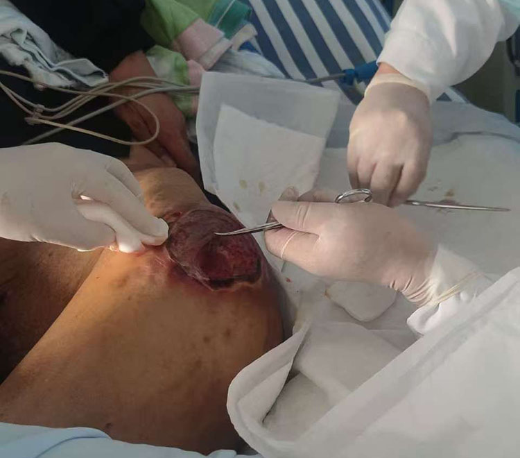 2025年1月13日,《中國燒傷創(chuàng)瘍雜志》編委、燒傷創(chuàng)瘍再生醫(yī)療技術臨床專家張強,應邀來到中國人民解放軍聯(lián)勤保障部隊九九一醫(yī)院燒傷整形科,為一位壓瘡患者進行會診治療,張教授親自示范為患者進行清創(chuàng)換藥處理,指導醫(yī)生規(guī)范應用再生醫(yī)療技術進行創(chuàng)面換藥治療,并針對臨床中遇到的問題進行了講解,得到了科室醫(yī)生的高度認可,患者家屬對張教授頂著炎熱親臨會診表示感謝!