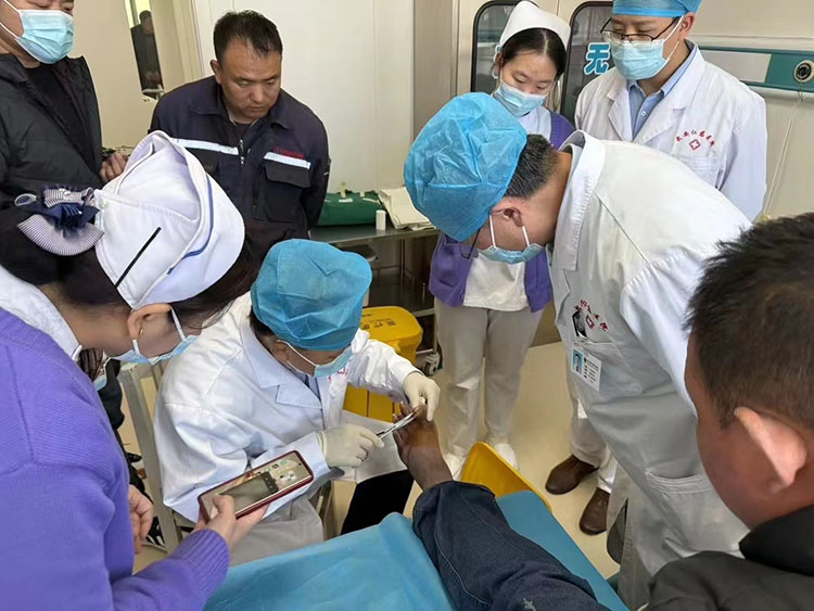 2025年1月6日,《中國燒傷創(chuàng)瘍雜志》編委、燒傷創(chuàng)瘍再生醫(yī)療技術臨床專家張強,應邀來到潛山市立醫(yī)院,對整形外科收治的4例慢創(chuàng)患者進行會診并進行再生醫(yī)療技術規(guī)范換藥示范,還對患者后期的檢查、治療提出指導性意見,受到醫(yī)患雙方的一致好評!