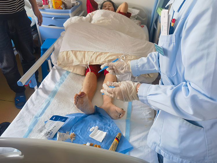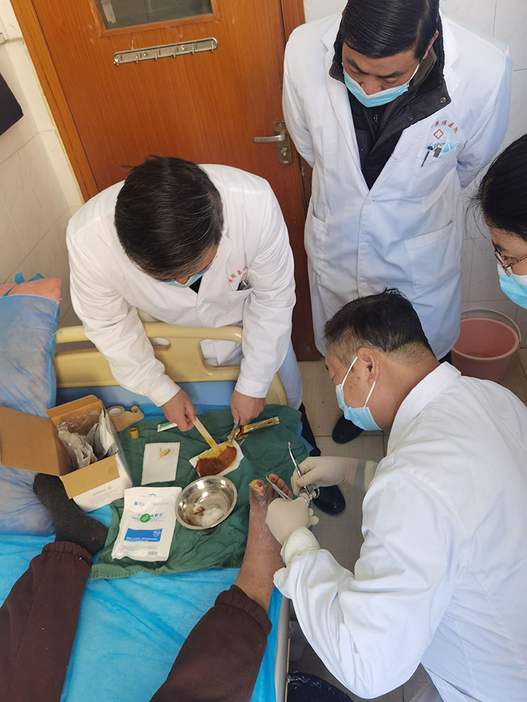 2024年3月8日,應(yīng)廣東東莞市濱海灣中心醫(yī)院廖主任邀請,中國中西醫(yī)結(jié)合學(xué)會燒傷專業(yè)委員會常務(wù)委員,《中國燒傷創(chuàng)瘍雜志》副總編輯王洪生,到科室對多位糖尿病足和壓瘡患者進(jìn)行了查房,親自示范規(guī)范應(yīng)用再生醫(yī)療技術(shù)對相關(guān)進(jìn)行慢性創(chuàng)面的處理,并對每個不同創(chuàng)面情況都提出了合理的治療方案,得到了醫(yī)護人員和患者家屬的一致好評!