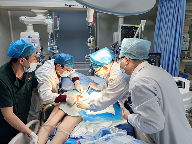 2024年3月4—5日,應(yīng)黃驊市神農(nóng)居醫(yī)院再次邀請,《中國燒傷創(chuàng)瘍雜志》常務(wù)編委、燒傷創(chuàng)瘍再生醫(yī)療技術(shù)臨床專家趙瑞慶教授,在該院為一例雙下肢嚴(yán)重?zé)齻颊哌M(jìn)行了再生醫(yī)療技術(shù)手術(shù)治療左下肢創(chuàng)面皮簇種植術(shù)、右下肢脛骨裸露處行脛骨打孔術(shù)(激活骨髓腔干細(xì)胞)。該科室王主任表示,趙教授帶來了新技術(shù),為科室發(fā)展、開展創(chuàng)面修復(fù)工作打下了堅實的基礎(chǔ)。