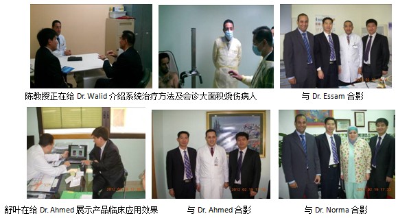 2月19日早上8:30, 美寶產(chǎn)品推廣團(tuán)隊(duì)對(duì)吉達(dá)地區(qū)三家大型醫(yī)院的四名重點(diǎn)醫(yī)生進(jìn)行了專訪。Dr. Walid是Dr. Soliman Fakeeh Hospital醫(yī)院整形科專家,使用再生醫(yī)療技術(shù)長(zhǎng)達(dá)十年時(shí)間,目前正在結(jié)合再生療法進(jìn)行白癜風(fēng)治療的研究。在同該醫(yī)生講解完大面積燒傷創(chuàng)面處理原則后,陳教授在病房會(huì)診了一例80%面積的燒傷患者,并給出創(chuàng)面處理意見。隨后趕往Bugshan Hospital腹腔鏡外科主任醫(yī)師Dr. Essam。該醫(yī)生從1998年開始使用美寶在各類創(chuàng)面上,尤其是肛瘺患者。在介紹完疤痕平后,表示已經(jīng)開始臨床使用,很高興能深入了解該產(chǎn)品的特點(diǎn)。最后,美寶團(tuán)隊(duì)來到了Dr. Erfan&Bagedo General Hospital醫(yī)院的皮膚科及婦產(chǎn)科。皮膚科醫(yī)生Dr. Ahmed從1992年就開始使用美寶技術(shù)和產(chǎn)品。在詳細(xì)介紹了相關(guān)疤痕平產(chǎn)品信息后,該醫(yī)生表示馬上會(huì)進(jìn)行臨床使用,并對(duì)美寶團(tuán)隊(duì)的到訪表示誠(chéng)摯的謝意。婦產(chǎn)科主任Dr. Norma是當(dāng)?shù)刂膵D產(chǎn)科醫(yī)師,使用美寶技術(shù)長(zhǎng)達(dá)15年。對(duì)剖腹產(chǎn)術(shù)后增生性疤痕治療的興趣很大,同時(shí)表示,很多病人為此非常苦惱。在介紹完疤痕平臨床效果后,該醫(yī)生驚呼神奇,并表示會(huì)總結(jié)使用后心得,撰寫疤痕平相關(guān)論文。