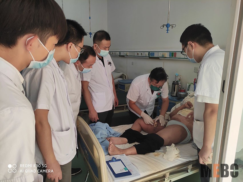 2021年9月15日,應(yīng)黃陂區(qū)中醫(yī)院外一科葉峰主任的邀請,中國中西醫(yī)結(jié)合學(xué)會燒傷專業(yè)委員會張強(qiáng)主任到該院會診病人,現(xiàn)場運(yùn)用再生醫(yī)療技術(shù)對一例慢創(chuàng)患者進(jìn)行了示范換藥,同時就換藥細(xì)節(jié)作了說明,隨后又與科里全體醫(yī)生作了交流,結(jié)合臨床病例對再生醫(yī)療技術(shù)運(yùn)用于燒傷及慢性創(chuàng)面作了深入淺出的講解,此次活動極大加深了臨床醫(yī)生對技術(shù)的了解,增強(qiáng)了大家運(yùn)用技術(shù)處理各種創(chuàng)面的信心!