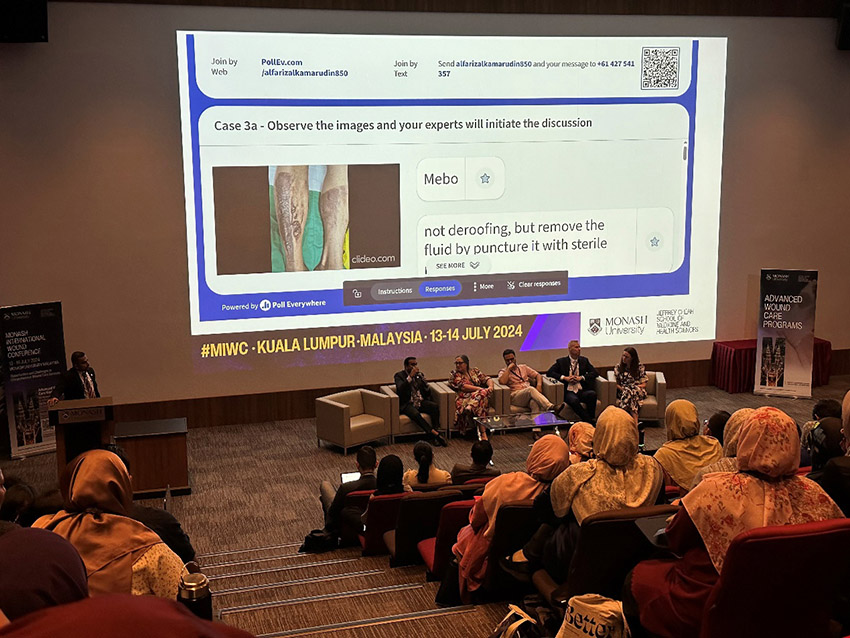 此外,美寶國際代表團積極參與了會議的各項學(xué)術(shù)活動,與參會者展開了熱烈而深入的交流。在病例分享環(huán)節(jié),多位權(quán)威醫(yī)師紛紛推薦美寶濕潤燒傷膏作為慢性創(chuàng)面治療的首選方案,其卓越的臨床效果得到了廣泛認可。尤為值得一提的是,來自馬來西亞安普安醫(yī)院的Lee Chin Yen醫(yī)生,在難愈合創(chuàng)面專題研討會上,以“美寶在四級壓瘡管理中的革新應(yīng)用”為題,進行了精彩的演講,進一步彰顯了美寶技術(shù)在該領(lǐng)域的領(lǐng)先地位,贏得了滿堂彩。