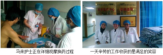 乘著5月南通國際燒傷學(xué)術(shù)會議的勝利閉幕的東風(fēng),通過美寶在馬來西亞當(dāng)?shù)氐暮献骰锇?,美寶國際市場集團(tuán)以及中國中西醫(yī)結(jié)合學(xué)會燒傷專業(yè)委員會相關(guān)領(lǐng)導(dǎo)及同志的積極聯(lián)絡(luò)和籌備,馬來西亞方面再次派遣3名護(hù)士分別是Ms. Hui Ting, Ms. Norli和Ms. Izliana,計劃于6月30日-7月10日來到四川省雅安市人民醫(yī)院燒傷科系統(tǒng)地學(xué)習(xí)再生醫(yī)療技術(shù)創(chuàng)面治療的相關(guān)技能。2012年6月30日順利抵達(dá)四川成都,四川省燒傷委員會辦公室主任邱衛(wèi)東熱情地接待了來訪客人,并對相關(guān)培訓(xùn)事宜進(jìn)行了安排,同時也為來訪客人介紹四川省燒傷委員會近些年的發(fā)展情況。