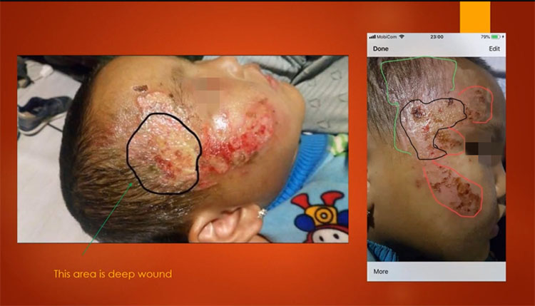 來自蒙古國家創(chuàng)傷與骨科研究中心的Tuya Kh醫(yī)生的演講題目為《濕潤燒傷膏治療創(chuàng)面的臨床效果》(Clinical Efficacy of Moist Exposed Burn Ointment in the Treatment of Wound)。在演講中,Tuya Kh醫(yī)生分享了她針對膿腫、燒傷、糖尿病足等的治療經(jīng)驗。特別值得一提的是,她分享了一名4歲患兒因疫情原因而接受醫(yī)生線上指導,自行在家中使用濕潤燒傷膏治療的情況。該患兒的創(chuàng)面愈合良好,未產(chǎn)生任何瘢痕,充分體現(xiàn)了濕潤燒傷膏換藥的易操作性。
