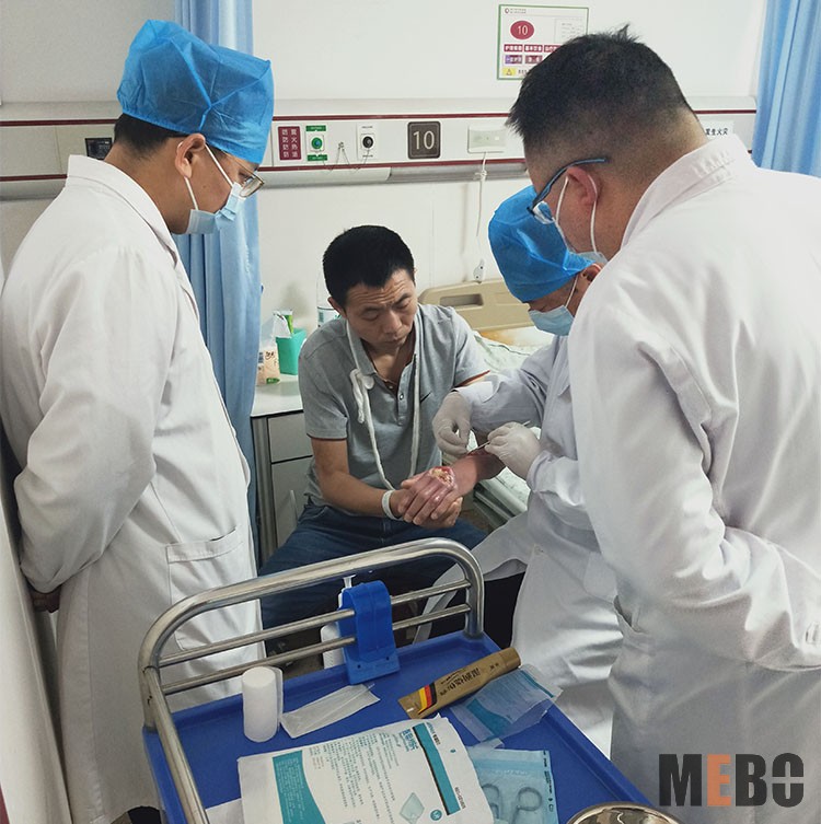 2021年4月13日,中國中西醫(yī)結合學會燒傷專業(yè)委員會委員張強教授應邀到鐘祥市中醫(yī)醫(yī)院,鐘祥長安醫(yī)院對多名壓瘡,糖尿病足患者進行了會診,應用再生醫(yī)療技術進行了規(guī)范換藥示范,并就創(chuàng)面情況給出了后續(xù)治療方法。