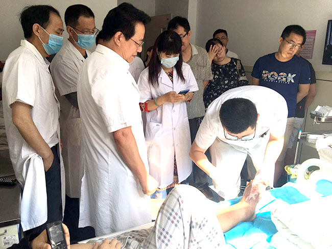 交流期間,丁明華教授向來賓全方位地介紹了再生醫(yī)療技術(shù)在難愈性創(chuàng)面治療中的獨(dú)特功效,重點以實例形式強(qiáng)調(diào)了再生技術(shù)在臨床應(yīng)用中對病人的極大助益。丁教授帶領(lǐng)來訪專家一行到病房看望了接受再生療法治療的病人,并介紹了病人的治療進(jìn)展情況,良好的治愈效果受到了專家主任對美寶的一致認(rèn)可和高度評價。