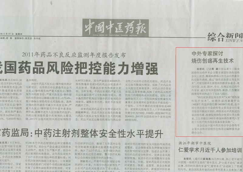 中國中醫(yī)報(bào):中外專家討論燒傷創(chuàng)瘍再生技術(shù)