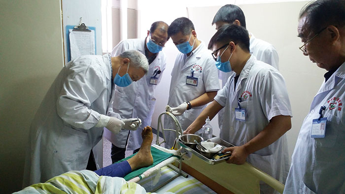 9月26日,享受?chē)?guó)務(wù)院政府特殊津貼的再生醫(yī)學(xué)知名專(zhuān)家、中國(guó)中西醫(yī)結(jié)合學(xué)會(huì)燒傷專(zhuān)業(yè)委員會(huì)副主任委員、衛(wèi)生部十年百項(xiàng)科技成果首批項(xiàng)目——皮膚再生醫(yī)療技術(shù)臨床應(yīng)用與技術(shù)指導(dǎo)專(zhuān)家組成員,《中國(guó)燒傷創(chuàng)瘍雜志》常委編委付子俊教授應(yīng)邀來(lái)到河口瑤族自治縣人民醫(yī)院,為該院醫(yī)護(hù)人員進(jìn)行再生醫(yī)療技術(shù)臨床規(guī)范化應(yīng)用培訓(xùn),受到院方熱烈歡迎,學(xué)員們學(xué)習(xí)熱情高漲,積極磋商交流,受益匪淺。