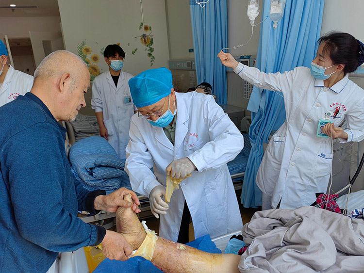 2024年10月23日,應通州區(qū)人民醫(yī)院、通州第三醫(yī)院之邀,《中國燒傷創(chuàng)瘍雜志》常務編委、燒傷創(chuàng)瘍再生醫(yī)療技術臨床專家趙瑞慶,分別在兩家醫(yī)院會診了5例慢創(chuàng)患者(雙下肢靜脈曲張15年潰瘍、三度壓瘡9*9cm、二例皮膚外傷久經未愈、一例皮膚腫瘤潰瘍),事后經病案討論,制定出個性化的治療方法,受到當地醫(yī)護人員及家屬的稱贊,還建立了通信網絡,后期將進一步治療與跟進指導。