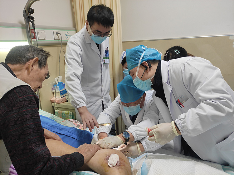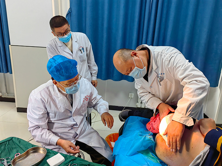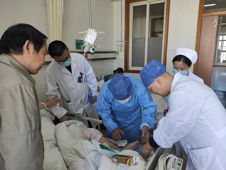 10月22日,應海安市中醫(yī)院之邀,《中國燒傷創(chuàng)瘍雜志》常務編委、燒傷創(chuàng)瘍再生醫(yī)療技術臨床專家趙瑞慶,在該院會診了2例慢創(chuàng)病人(下肢外傷內固定術后鋼板外露、多發(fā)性壓迫性潰瘍)。之后在科內進行了《再生技術治療十大慢創(chuàng)疾病》的培訓,耐心地解答了大家提出的諸多臨床問題,承諾踐行走基層活動得到當地醫(yī)護人員的一致好評!