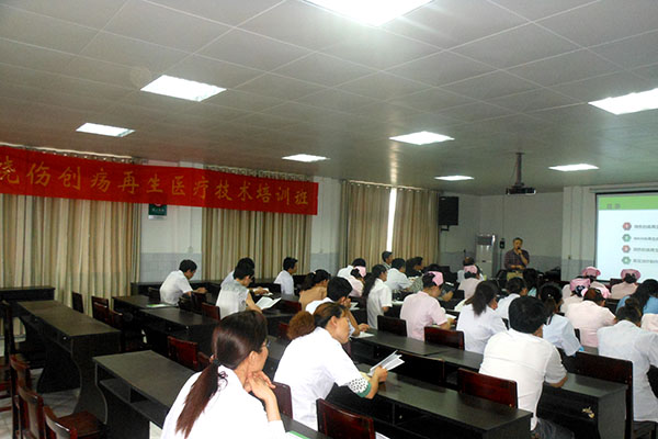 2015年6月16日,應(yīng)鐘祥市柴湖鎮(zhèn)中心衛(wèi)生院張院長的邀請,中國中西醫(yī)結(jié)合學(xué)會燒傷專業(yè)委員會常委、《中國燒傷創(chuàng)瘍雜志》常務(wù)編委金黨軍教授,對全院醫(yī)護人員進行了“燒傷創(chuàng)瘍再生醫(yī)療技術(shù)臨床應(yīng)用”的培訓(xùn)。