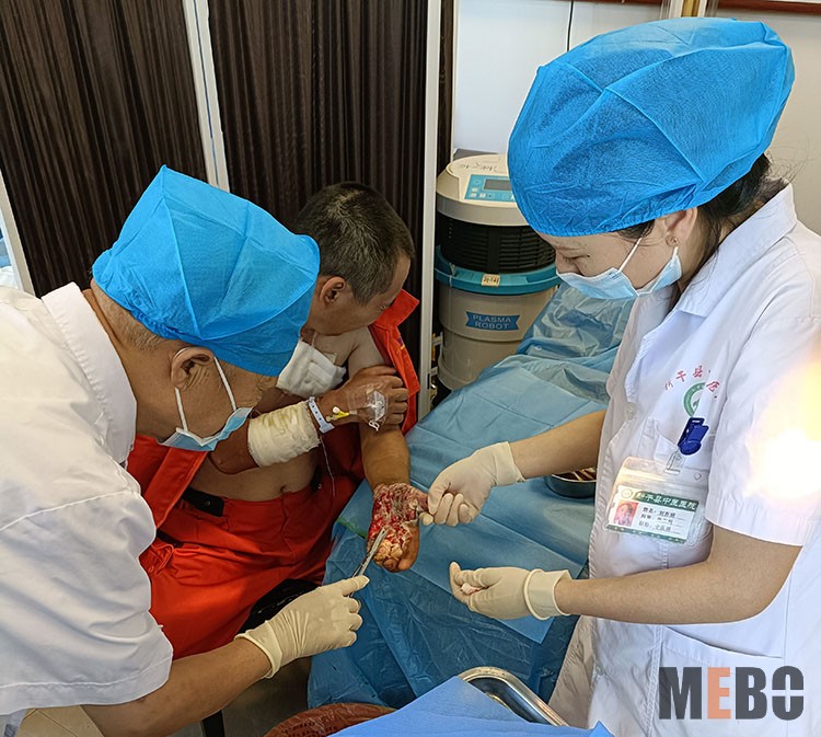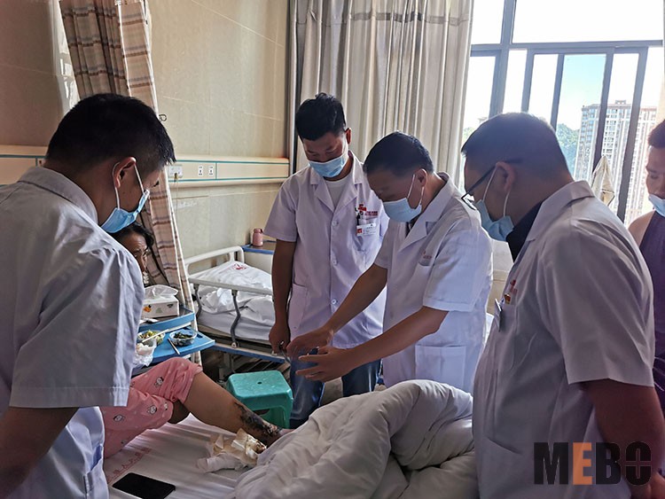 8月10日,北京榮祥再生醫(yī)學研究所副所長、中國中西醫(yī)結(jié)合學會燒傷專業(yè)委員會常務(wù)委員、《中國燒傷創(chuàng)瘍雜志》副總編輯、應(yīng)用燒傷創(chuàng)瘍再生醫(yī)療技術(shù)治療糖尿病足領(lǐng)域?qū)<彝鹾樯魅?,?yīng)邀來到東莞市濱海灣中心醫(yī)院燒傷整形科會診。王教授會診了二個頭面部燒傷,二個糖尿病足,一個手部糖足患者,并親自動手清創(chuàng)糖尿病足一位患者。在查房過程中,偶遇了上個月王教授治療的一例糖足患者,現(xiàn)已治愈出院,患者家屬都很開心,對王教授表示感謝!