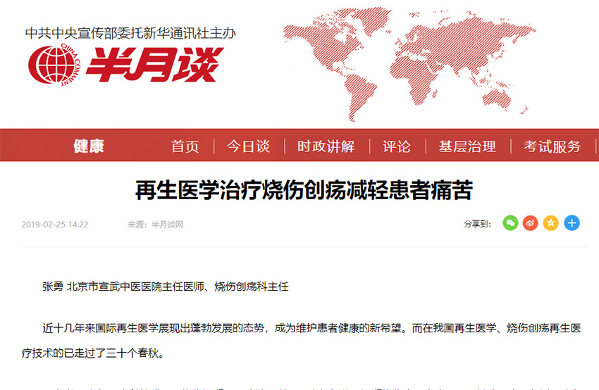 “再生醫(yī)學日”前夕,《半月談》發(fā)表北京宣武中醫(yī)醫(yī)院張勇文章紀念燒傷創(chuàng)瘍再生醫(yī)療技術三十周年......